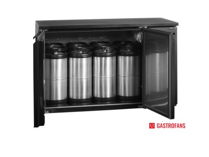 Minibar na KEG sudy, 1350×860 mm| Pre 8 × KEG 20 l alebo 2 × KEG 50 l Ventilované chladenie, elektronické ovládanie 2 samozatváracie plné dvere, nastaviteľné nôžky Nerez