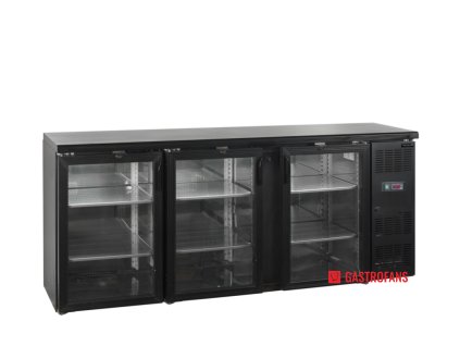 Ventilované chladenie, 277 l, +2 až +8 °C | rám z nerezovej ocele a lesklého čierneho rámu data-v-89f8b130="">zadné presklené posuvné dvere