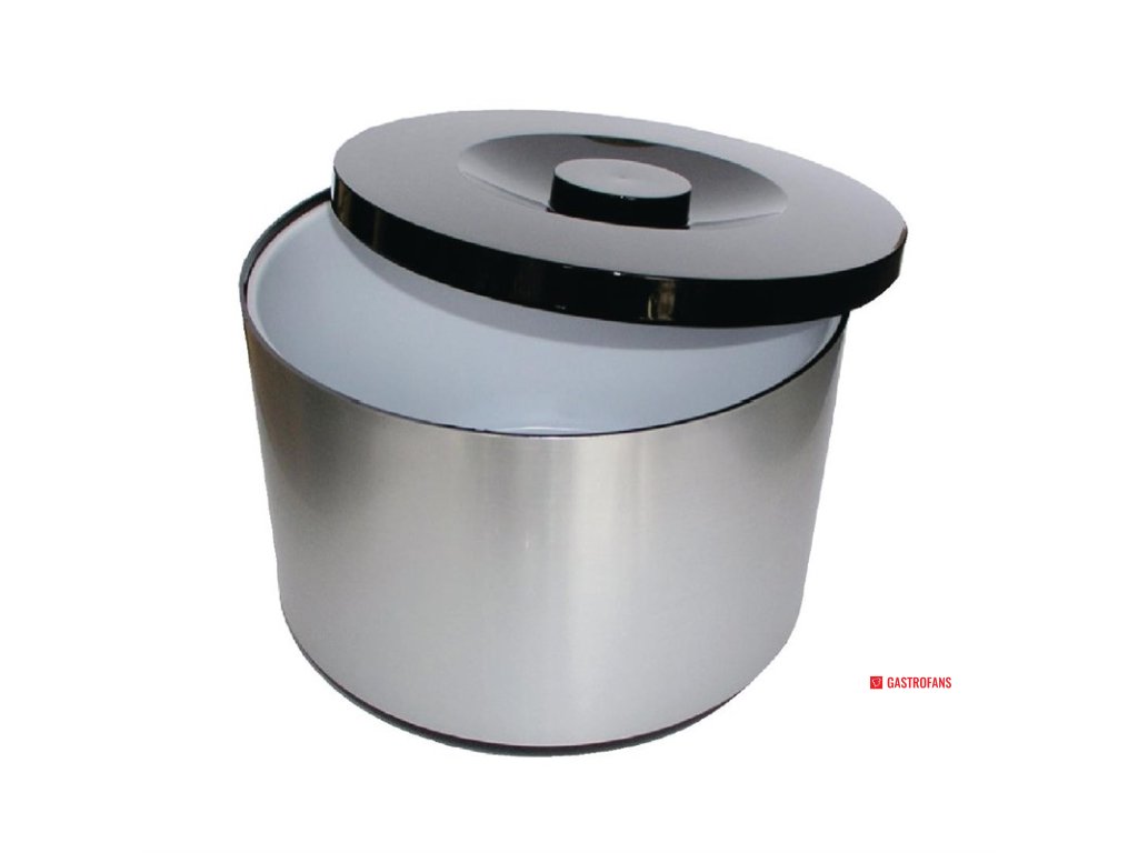 Veľkoobjemové vedro na ľad s vekom a odnímateľnou odkvapkávacou táckou. Moderný kartáčovaný hliníkový povrch.Dodatočné parametre