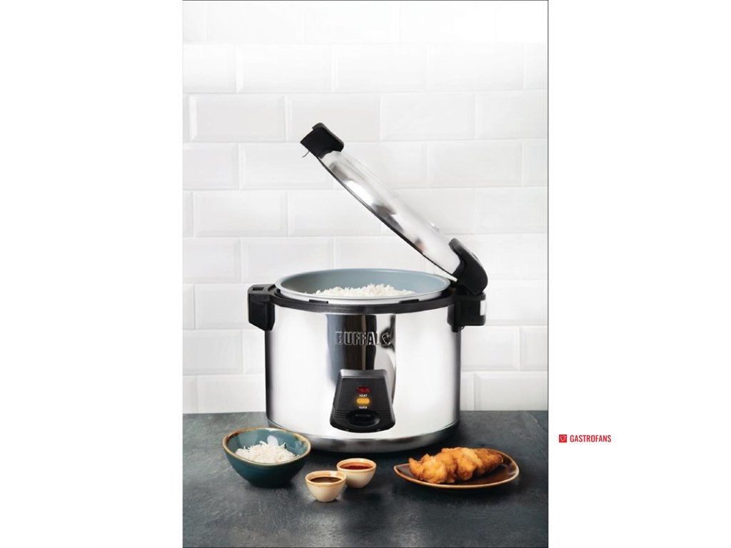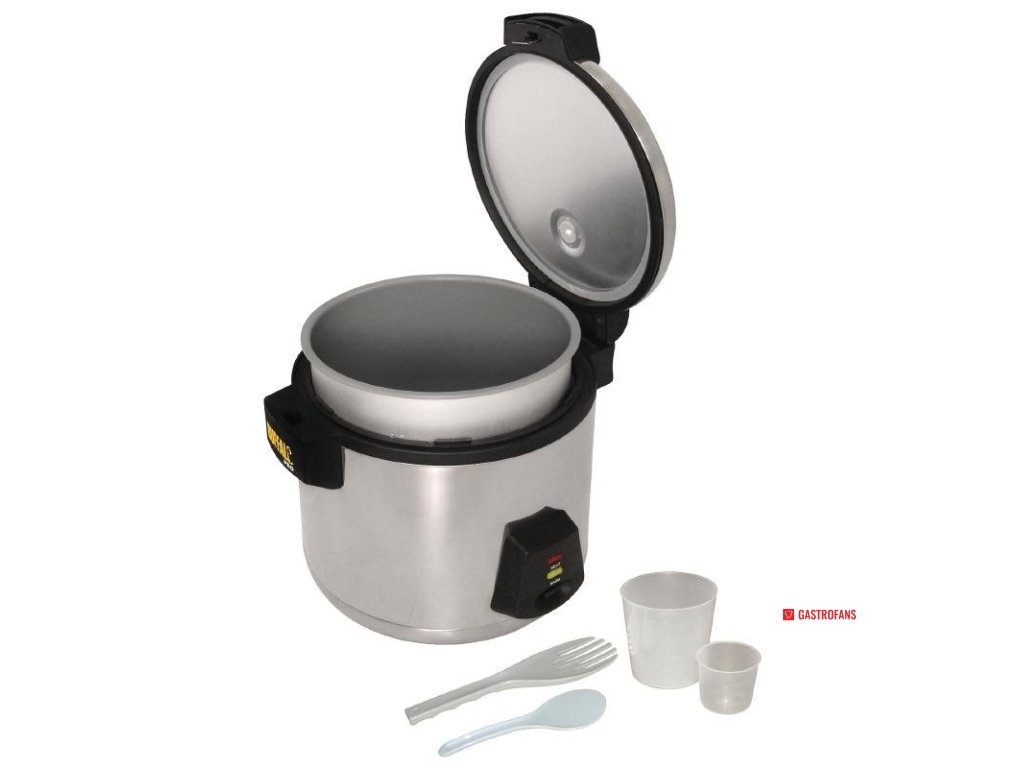 Komerčný ryžovar, v ktorom sa ryža vždy dokonale uvarí. Tento praktický a bezproblémový ryžovar je vybavený užitočnou funkciou automatického zapnutia, vďaka ktorej uchová ryžu pri ideálnej servírovacej teplote, a držadlami, ktoré zostanú chladné, aj keď bude ryžovar zahriaty, takže vaše ruky budú ochránené. Jeho nerezová konštrukcia a nepriľnavá vnútorná nádoba sa ľahko čistia a udržujú. Dodáva sa so stierkou, lyžicou a odmerkou na ryžu.