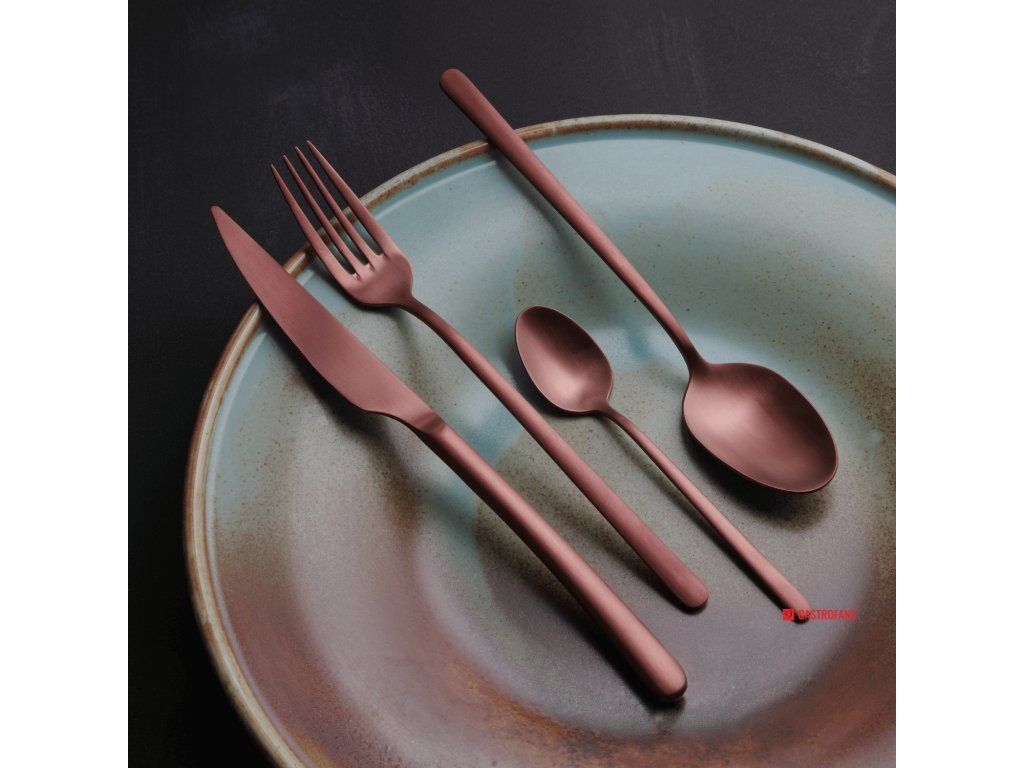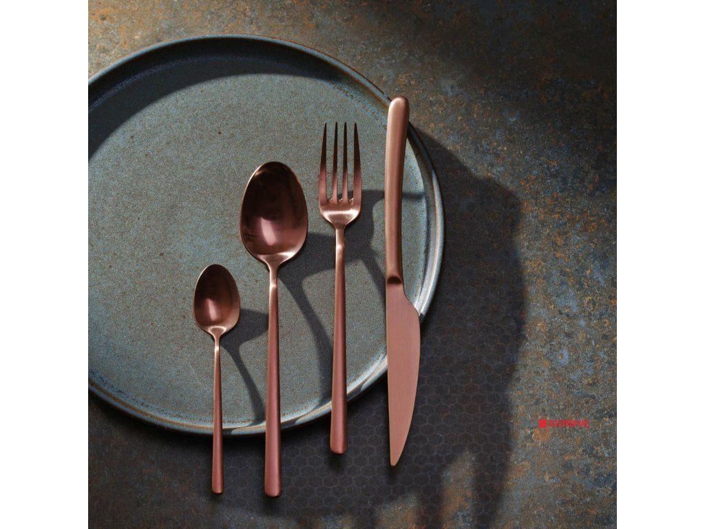 Proces PVD (Physical Vapor Deposition) spočíva v odparovaní kovu vo vysokom vákuu. Súčasne sa pridáva reaktívny plyn, ktorý vytvára zmes s kovovými parami a usádza sa vo forme ultratenkej, pevne priľnavej farebnej vrstvy na povrchu našich príborov. Príbory je možné bez problémov umývať v umývačke riadu. - Vyrobené z ocele 18/10 - Hrúbka 4 mm - Možno bezpečne umývať v umývačke riadu.