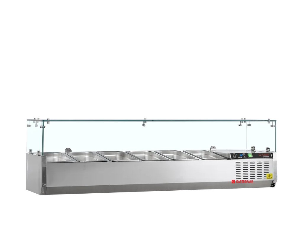 Chladiaca nadstavba TEFCOLD GVC33-140 je ideálnou voľbou pre prevádzky, kde je kľúčová rýchlosť, prehľadnosť a hygienická manipulácia so surovín. Hodí sa do pizzérií, fast food prevádzok, bistier aj sendvičových barov. Nadstavba je navrhnutá pre umiestnenie až 6× GN1/4 gastronádob (nie sú súčasťou balenia), ktoré umožňujú efektívne rozdelenie surovín priamo v zóne prípravy.