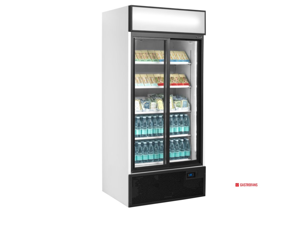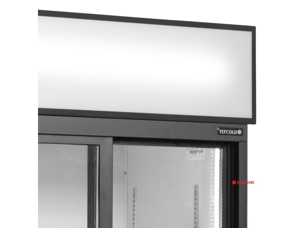 Dvojdverová chladiaca skriňa TEFCOLD má Integrovaný svetelný reklamný panel. Výrazná svetelná nadstavba v hornej neprehliadnuteľné chladiace vybavenie pre predajne, markety, čerpacie stanice aj večierky.