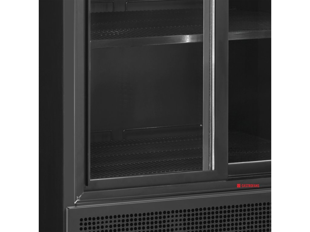 Táto profesionálna chladiaca skriňa s posuvnými presklenými dverami a výraznou svetelnou nadstavbou v tvare priestoru. Skriňa je vybavená ventilovaným chladením pre rovnomernú teplotu, automatickým odmrazovaním a vnútorným LED osvetlením, ktoré zvyšuje viditeľnosť tovaru. Vďaka nastaviteľným policam a nôžkam je flexibilný aj pri premenlivom sortimente.