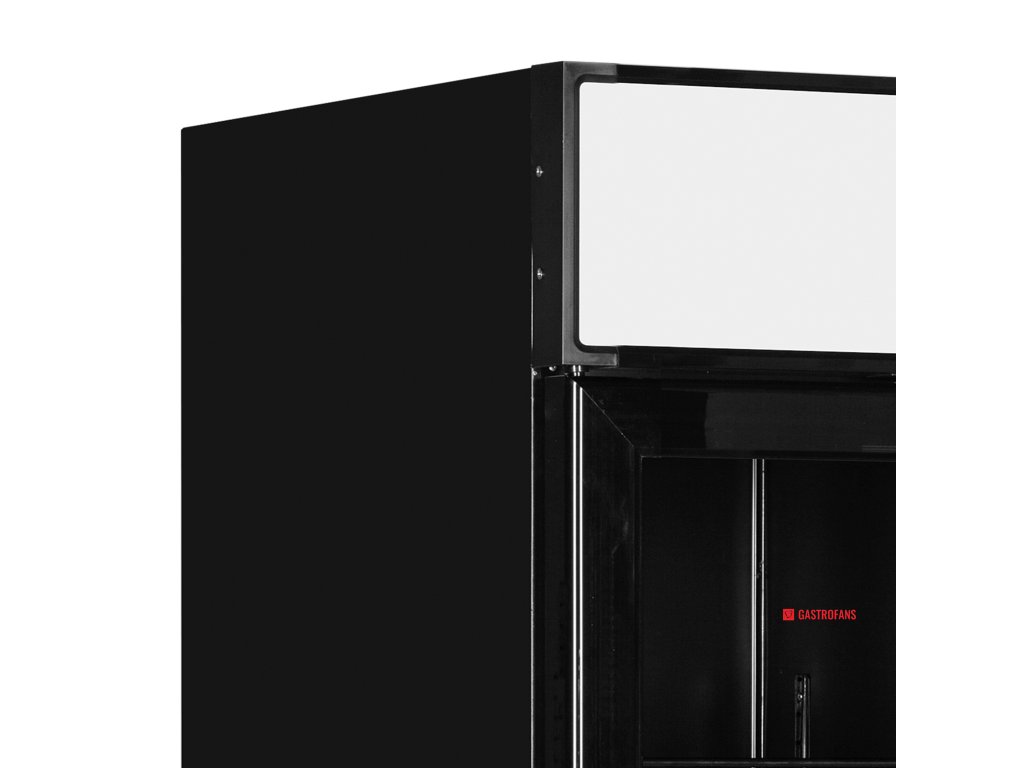 Táto moderná chladiaca skriňa TEFCOLD kombinuje ventilované chladenie pre rovnomernú teplotu s presklenými krídlovými dverami a vnútorným LED osvetlením pre perfektnú prezentáciu tovaru. Horný reklamný LED panel umožňuje výrazný branding, digitálny termostat s displejom uľahčuje presné riadenie teploty a automatické odmrazovanie znižuje nároky na údržbu. Robustné prevedenie v čiernej RAL 9005 dopĺňajú nastaviteľné kolieska aj nožičky a nerezová vnútorná základňa pre hygienické čistenie. Energeticky úspornú prevádzku potvrdzuje trieda B (EPREL 445261).