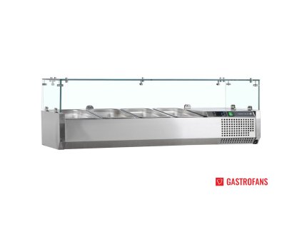 Teplotný rozsah +2 až +8°C, 1200×335 mm| Kapacita 5× GN 1/4 (nie sú súčasťou balenia) Sklenené krytie pre hygienickú ochranu potravín Digitálny termostat s LED displejom...