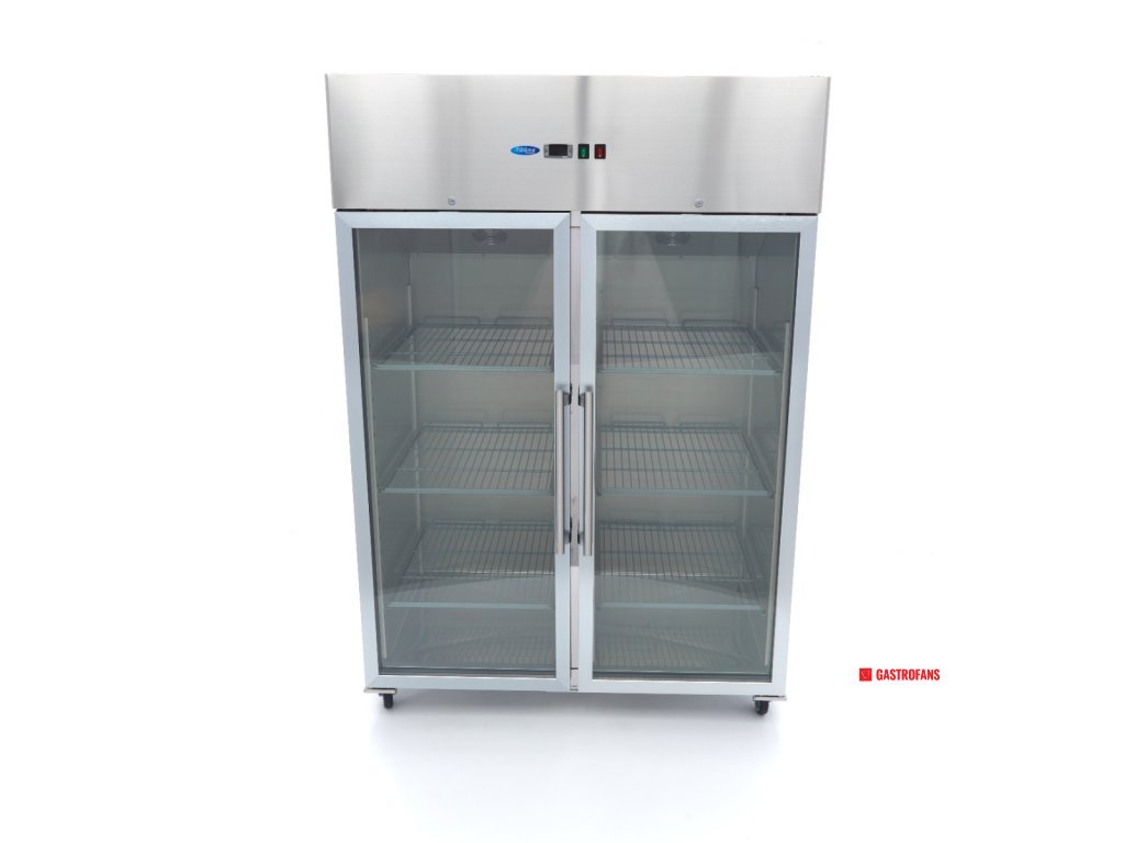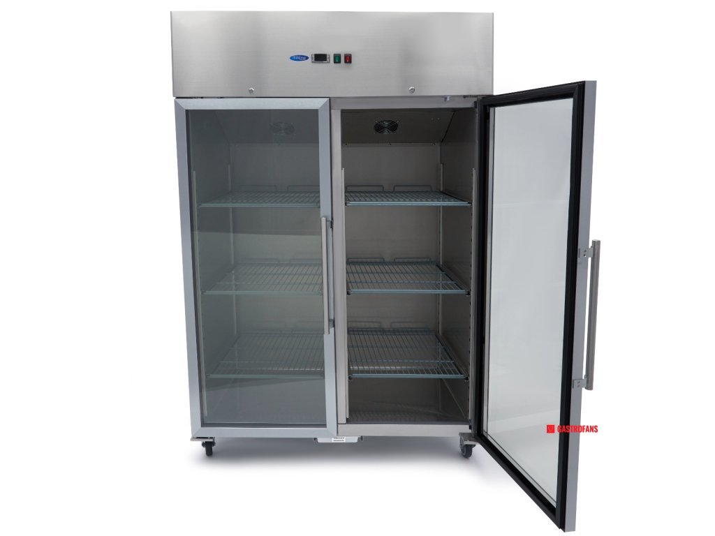 Čerstvé suroviny a už pripravené potraviny treba uchovávať v chlade, aby vydržali dlhšie. Táto chladnička z nerezovej ocele s celkovým objemom 1200 l ponúka rozšírené možnosti chladenia pre vaše stravovacie zariadenie. Vnútorný priestor je vybavený energeticky úsporným LED osvetlením a šiestimi výškovo nastaviteľnými policami, ktoré sú vhodné pre nádoby 2/1 GN. Sklenené dvere s antibakteriálnym gumovým tesnením obsahujú vstavaný zámok a umožňujú prezerať chladené produkty bez nutnosti otvorenia chladničky. displejom, ktorý uľahčuje čítanie a nastavenie teploty. Výrobky je možné chladiť v širokom rozsahu teplôt. Táto chladnička využíva statické chladenie s ventilátorom, ktoré zaisťuje, že vzduch vo vnútri chladničky je v poriadku Kompaktná ochranná izolácia 6 cm