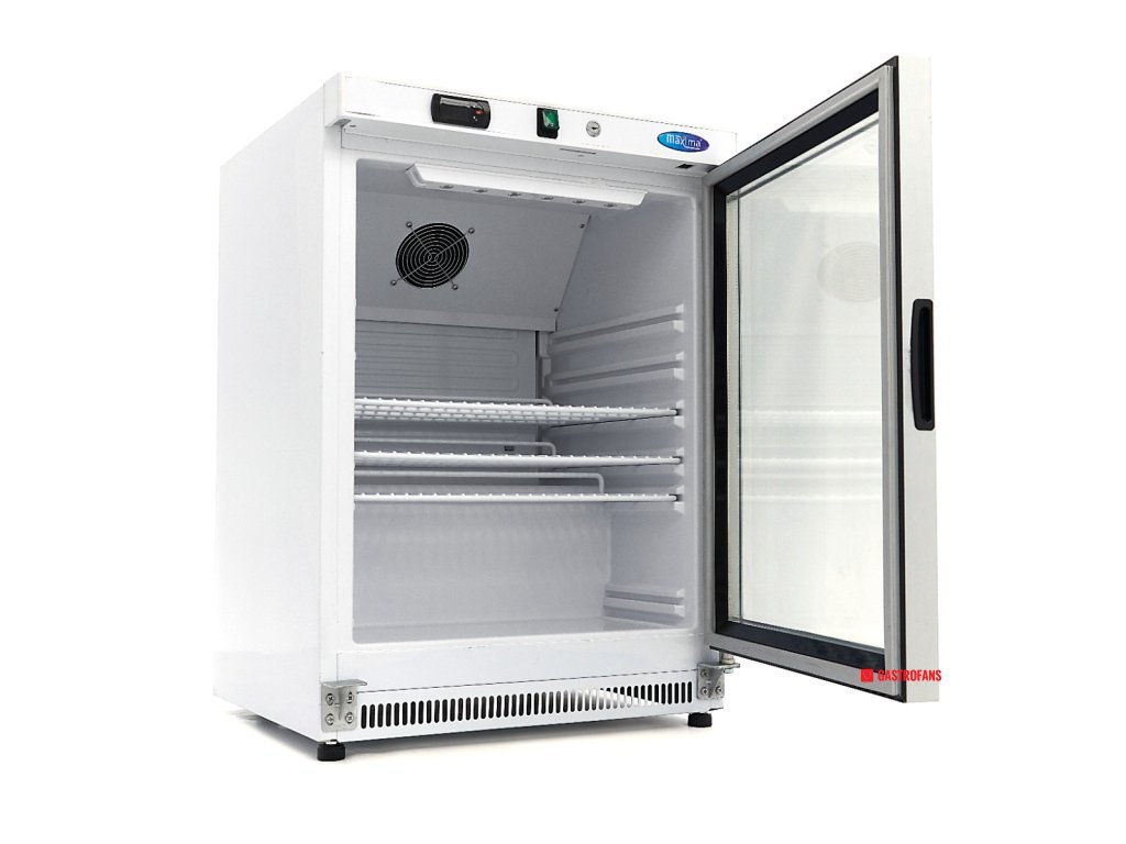 Profesionální bílá chladnička Maxima – 200 l se skleněnými dveřmi