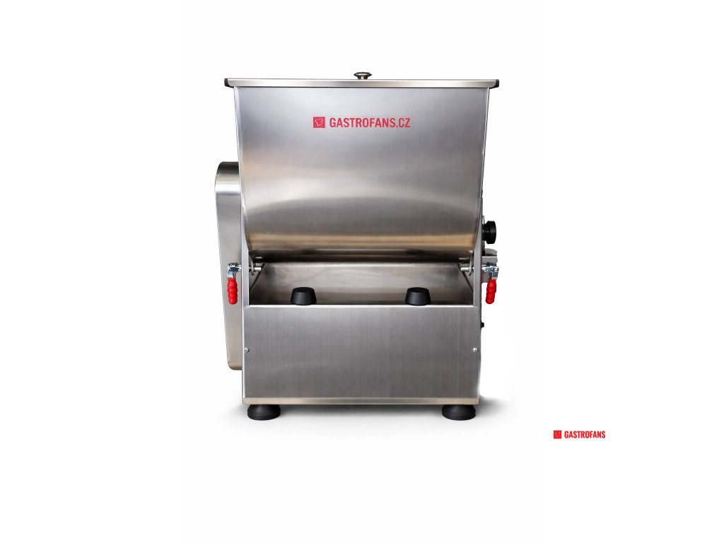 Nerezová nádoba s objemom 30 litrov poskytuje dostatok priestoru aj pre väčšie dávky bez toho, aby utrpela kvalita miešania. Praktické veko zabraňuje rozstreku, minimalizuje znečistenie okolia a zvyšuje bezpečnosť pri prevádzke. Kompaktné rozmery umožňujú ľahké umiestnenie v kuchyni, dielni aj profesionálnej prevádzke.