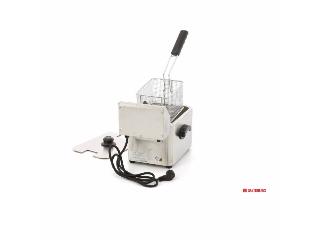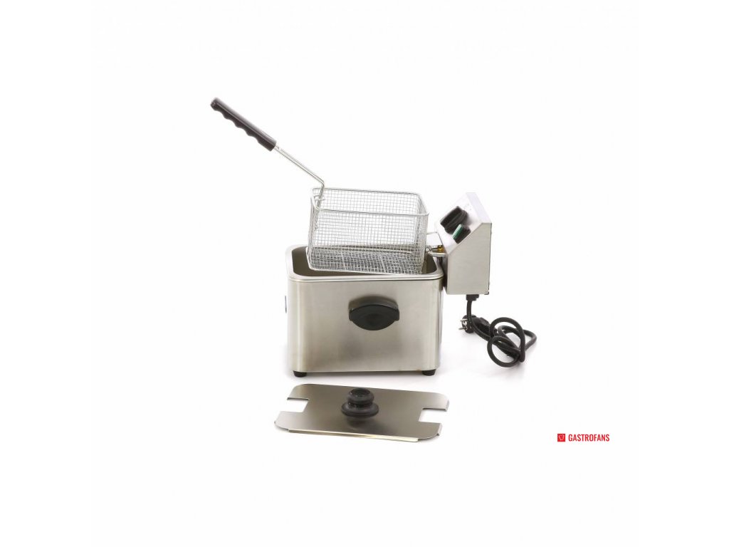 Luxusne spracovaná fritéza s objemom 4 litre na vyprážanie zeleniny, hranolčekov, rýb a ďalších pochutín. Tento spotrebič je vhodný ako do domácej, tak do profesionálnej kuchyne. Jedná sa o kompaktný stolný model, ktorý je možné umiestniť na akúkoľvek linku alebo stôl. Vďaka gumovým nožičkám sa fritéza počas používania neposúva a zostáva pevne na svojom mieste. Pomocou termostatu môžete presne nastaviť teplotu v rozmedzí od 0 °C do 185 °C, takže výrobky vychádzajú z panvice dokonale chrumkavej as dostatočnou chrumkavosťou.