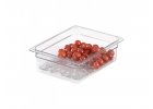 Rôzne priehľadné polykarbonátové nádoby GN rôznych veľkostí. Od 1/1 GN do 1/9 GN av rôznych výškach. Možno ich stohovať a umývať v umývačke riadu.