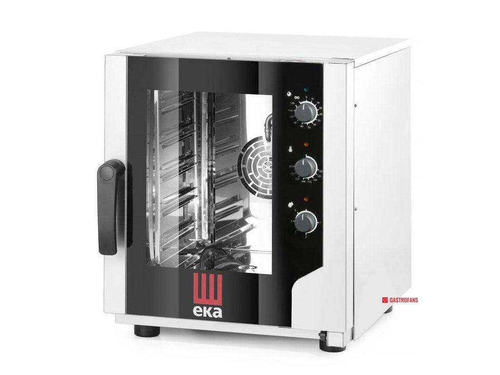 Úplne základný konvekťák na päť nízkych géčok 2/3 alebo jeden 2/3 bazén. Vďaka malým rozmerom a možnosti cmúľať 230V je vhodný to miest kam ich jeho väčší kamoši nezmestia - foodtrucky, stánky a malé prevádzky. Ovládanie zvládne aj postarší teta páč sú tam len tri cumlíky - jeden na čas, jeden na podiel pary a ten posledný na teplotu. Len tu neočakávaj sondy, automatické umývacie sytémy alebo páčivý displej s peknými obrázkami dokonca nejde nastaviť ani merry christmass pri oznámení konca programu. Tento konvekťák sa dá v pokoji hodiť aj na pracovný stôl alebo konzolu na stenu a ušetrí ešte viac miesta, čo toho v kuchyni nie je nikdy dosť. V porovnaní s ostatnými kamošmi v našej ponuke nie je práve najmúdrejší, ale je to neoceniteľný pracant za veľmi rozumnú cenu. Ideálne dievča na prvé rande :-)