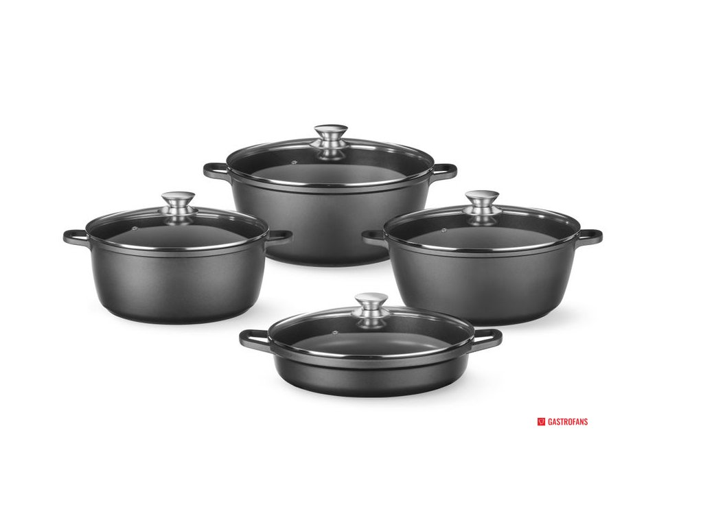 Vyroben z tlakově litého hliníku s tepelně odolným povlakem. Nepřilnavý povlak z PTFE. Uchyt je vyrobený z nerezové oceli. Vhodné pro použití na plynovém, indukčním, elektrickém a keramickém sporáku. Indukční základna. Bezpečné použití v troubě až do 250 °C; není vhodné pro použití při vyšších teplotách. Lze mýt v myčce na nádobí. Hrnec je bezpečný pro použití v troubě. Pouze víko není bezpečné a vhodné dávat do trouby.