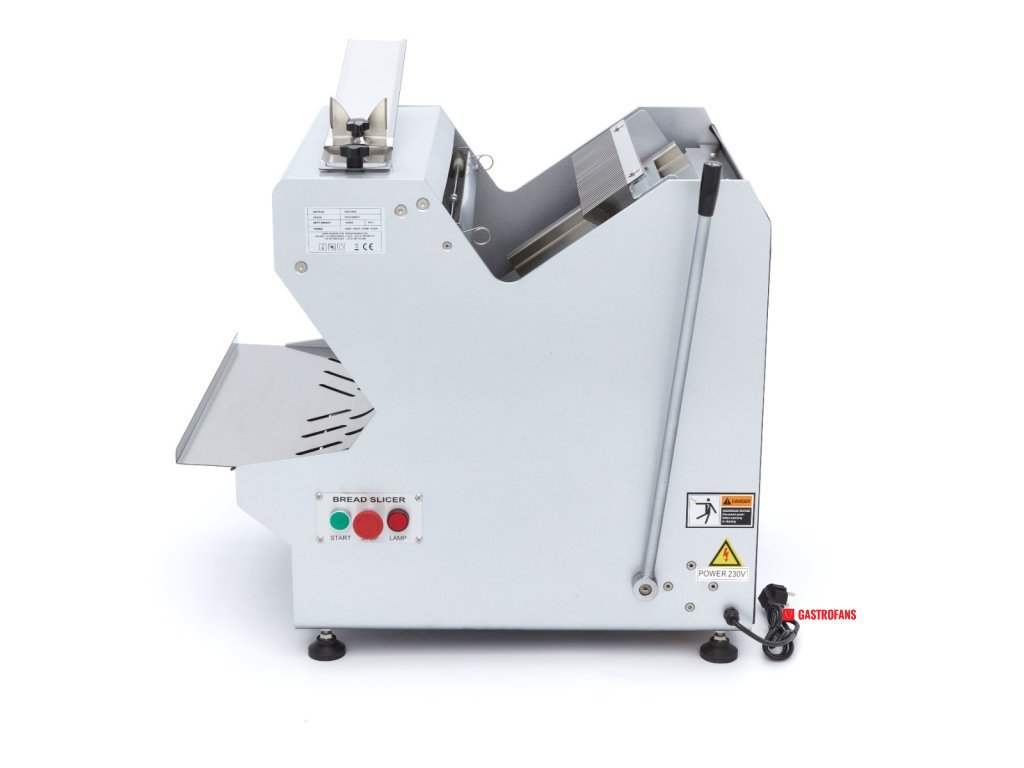 Tento krájač na chlieb je vyrobený z ocele s povrchovou úpravou, je odolný a je určený na krájanie rôznych druhov chleba. Naše krájače chleba sú k dispozícii s rôznymi hrúbkami chleba. Tento strojček má vrúbkované čepele z nerezovej ocele vzdialenej od seba 11 mm.