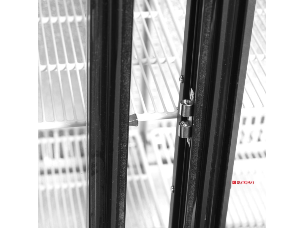 Tento minibar s posuvnými presklenými dverami kombinuje skvelý vzhľad, vysokú funkčnosť a úspornú prevádzku. Vďaka čiernemu dizajnu zapadne do každého moderného gastro interiéru. Rada DB je dostupná aj vo variantoch s krídlovými dverami.