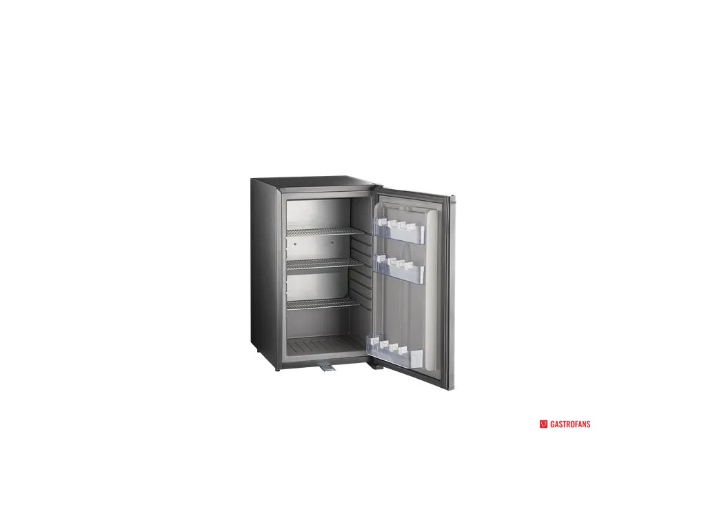 Hotelový minibar TEFCOLD TM 55 je ideálnou voľbou pre hotely, penzióny aj kancelárie, kde je požadovaná tichá prevádzka. Vďaka absorbnému chladiacemu systému pracuje úplne nehlučne (0 dB(A)), čo zaručuje pokojný spánok hostí. Minibar má elegantné čierne opláštenie a antracitový interiér, pôsobí štýlovo a zároveň funkčne. Je vybavený plnými dverami s možnosťou zmeny otvárania, nastaviteľnými policami aj priehradkami vo dverách. Vnútorné LED osvetlenie sa zapína pri otvorení dverí a minibar je vybavený aj praktickým zámkom pre vyššiu bezpečnosť. Vďaka nízkej spotrebe energie je navyše ekonomickým riešením.