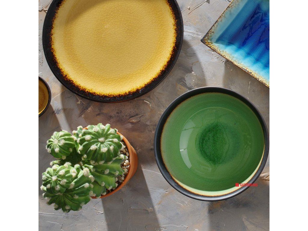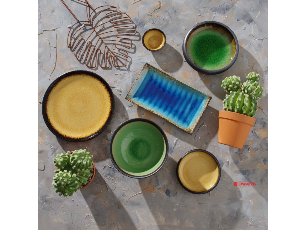 Kolekcia Beryl vyniká dominantnou zelenou farbou a nepravidelnou štruktúrou povrchu, ktorá pôsobí prirodzene a autenticky. Jemne drsnejšia textúra dodáva riadu remeselný charakter a podčiarkuje vizuálny kontrast servírovaných pokrmov.