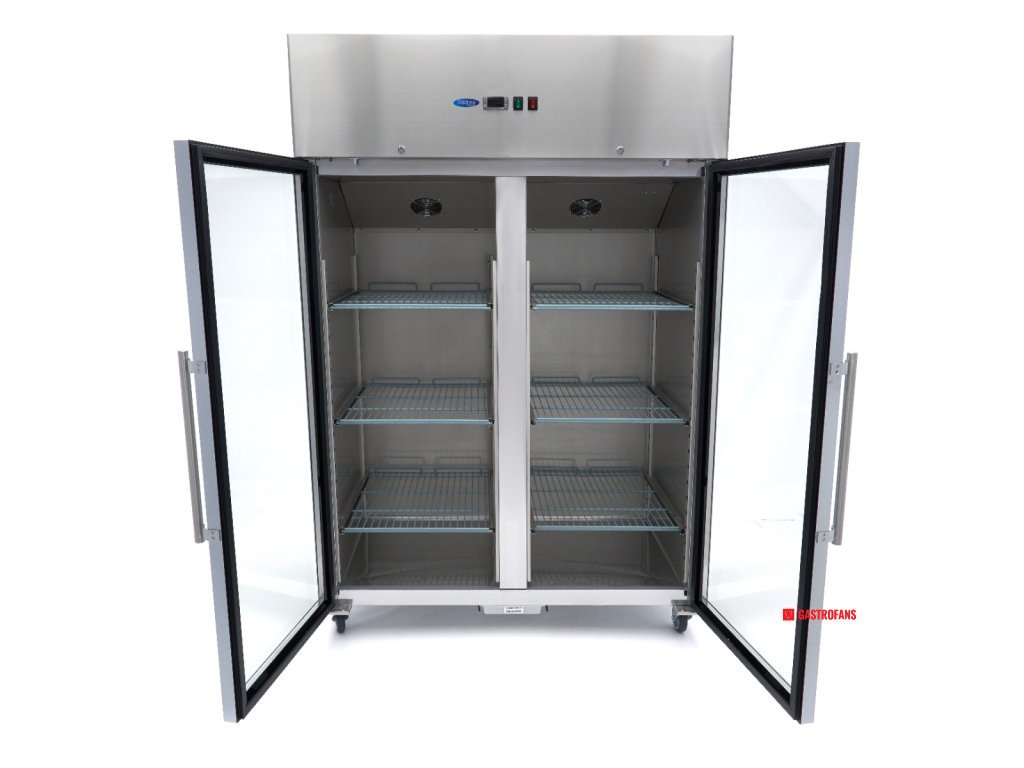 Mraznička dvojkrídlová - nerezová oceľ - sklenené dvere - 1200 l Maxima