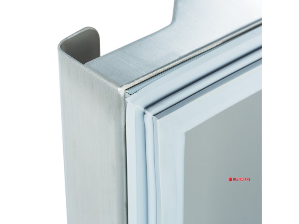 Táto mraznička má dvoje veľké dvere a šesť políc. Mriežky môžete sami umiestniť do požadovanej výšky v krokoch po cca 5 cm alebo pridať ďalšie mriežky. Mriežky majú veľkosť GN 2/1, ale do tejto mrazničky môžete umiestniť aj dve mriežky o veľkosti 1/1 GN. LED osvetlenie vo dverách sa automaticky rozsvieti pri otvorení dverí. Vďaka magnetickému tesneniu dverí sú dvere pevne zatvorené, čo zabraňuje ich ponechaniu pootvorené. Vyhrievané gumy dverí zabraňujú ich namŕzaniu. Potraviny môžete tiež bezpečne uzamknúť pomocou zámku.