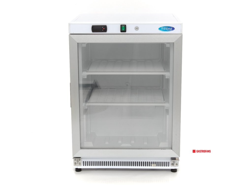 Kompaktní profesionální mraznička v bílé barvě se skleněnými křídlovými dveřmi