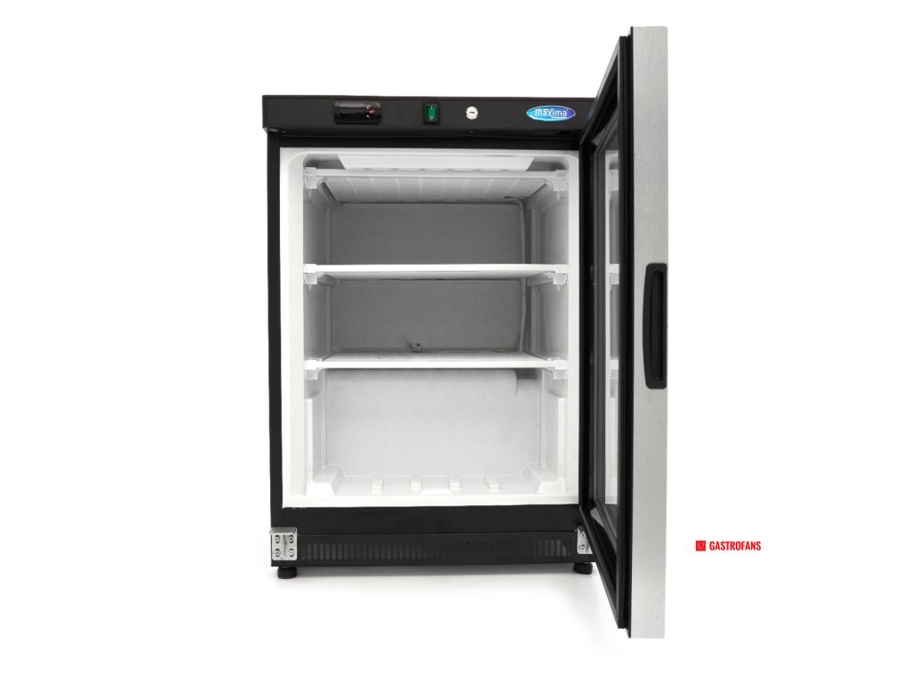 Táto čierna profesionálna mraznička s čistým objemom 114 litrov je ideálna pre prehľadné a hygienické skladovanie mrazených produktov v gastronomických prevádzkach, bistrách aj maloobchodných predajniach. Sklenené krídlové dvere s dvojitým zasklením umožňujú rýchlu vizuálnu kontrolu obsahu bez otvárania a znižujú tak tepelnú záťaž. Je vybavená zámkom a vnútorným LED osvetlením.