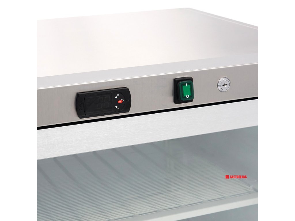 Táto spoľahlivá a kompaktná mraznička v nerezovom prevedení je ideálnym riešením pre každú profesionálnu kuchyňu. Umožňuje jednoduché sledovanie zásob, rýchle chladenie a predovšetkým hygienické a úsporné skladovanie mrazených potravín.