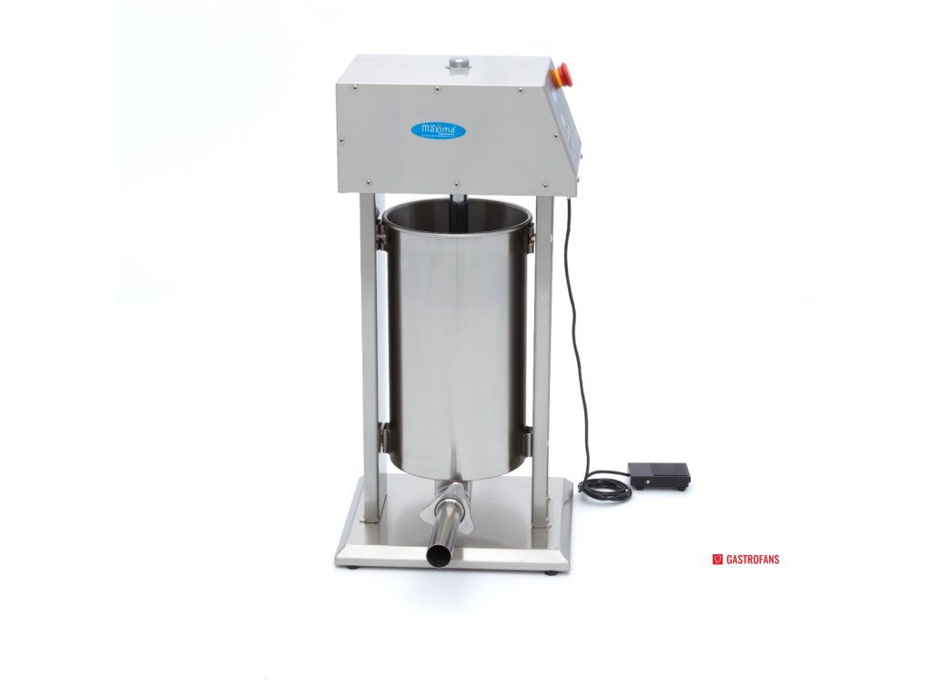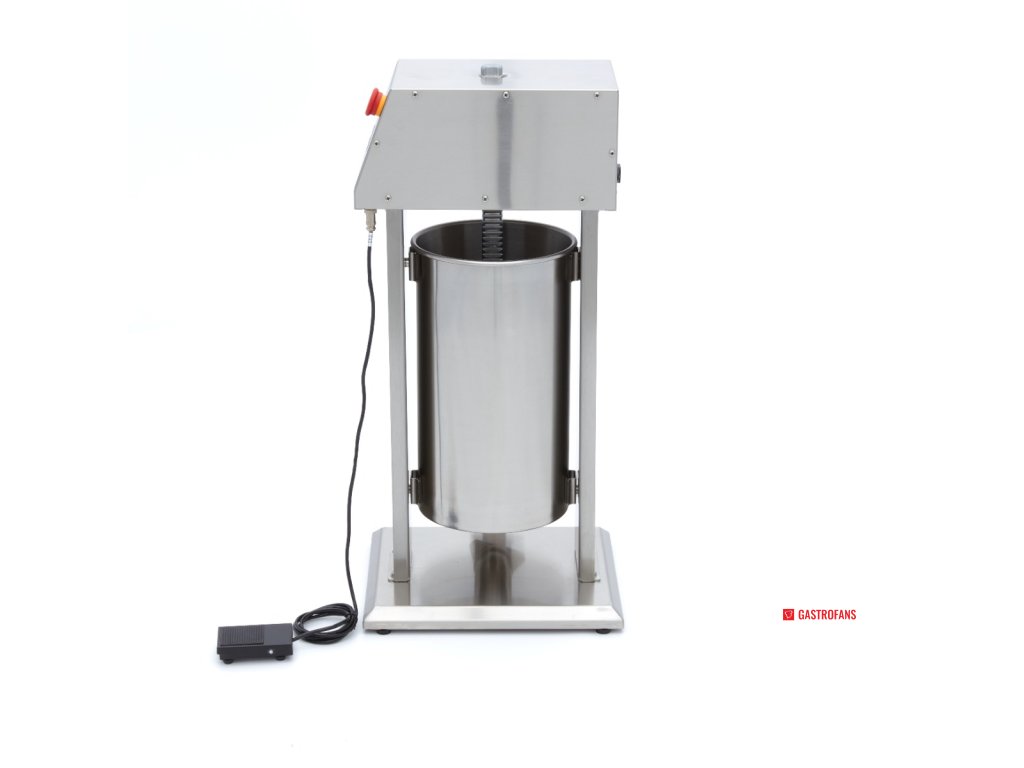 Naplňte klobásy rýchlo a efektívne pomocou tejto automatickej plničky klobás, ktorá ponúka kapacitu 15 l. Tento profesionálny plnič klobás je vyrobený výhradne z nerezovej ocele a dodáva sa so štyrmi plniacimi rúrkami s priemerom 16, 22, 32 a 38 mm. Súčasťou je aj nožný pedál na ovládanie plničky klobás, takže máte voľné ruky na plnenie a otáčanie klobás. Prítlačná doska tohto spotrebiča má silikónové tesnenie, ktoré je nepriepustné a odnímateľné. Táto profesionálna plnička klobás má 10 rýchlostí plnenia od 0 do 100, takže máte vždy k dispozícii tú správnu rýchlosť, ktorú potrebujete pre presné dávkovanie. Automatická plnička klobás