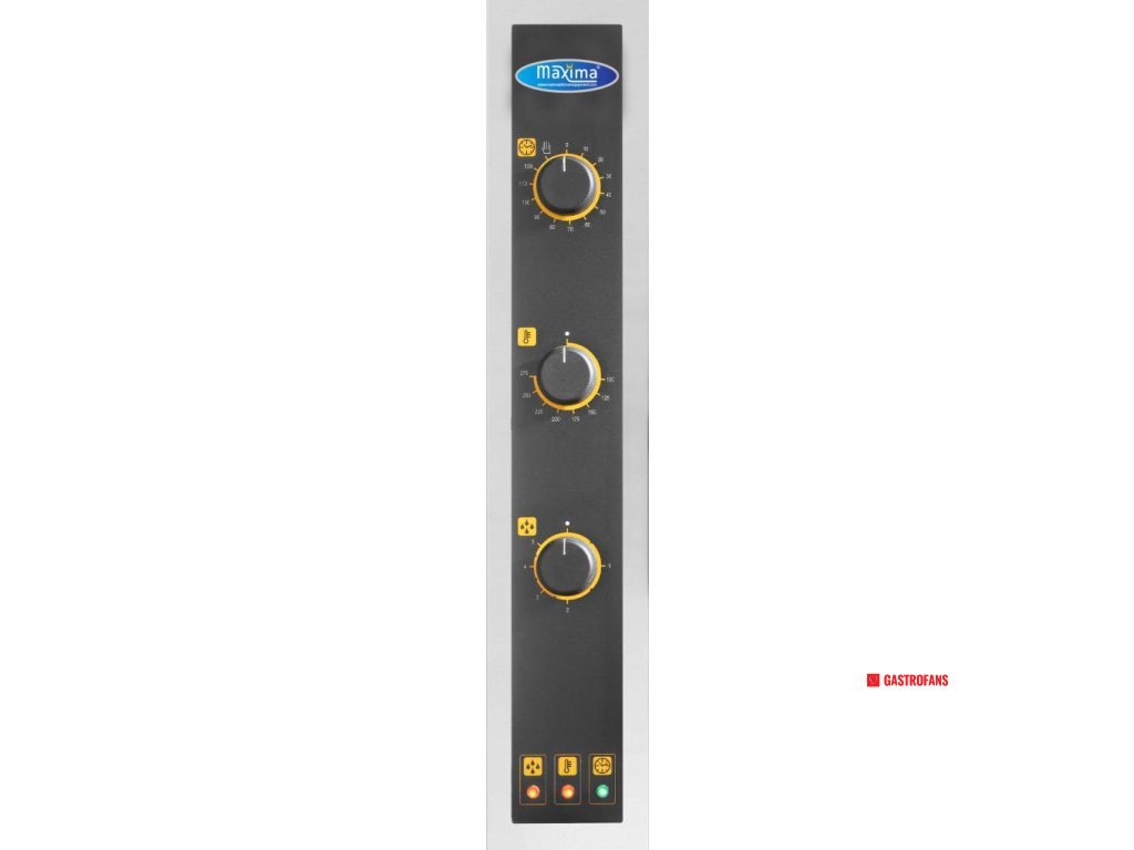 Pri kúpe tejto robustnej pekárskej rúry získate šesť plechov s rozmermi 60 x 40 cm. Vzdialenosť medzi plechmi je 8 cm. Rúra je vďaka analógovým tlačidlám užívateľsky veľmi prívetivá a ľahko sa ovláda. K dispozícii je časovač, ktorý je nastaviteľný v rozmedzí 0 až 120 minút. Má taktiež termostat pre teploty v rozmedzí 0 až 275 °C. Svetelné kontrolky na prednej strane presne ukazujú, kedy je rúra pripravená a kedy má správnu teplotu na pečenie. Osvetlenie je zabudované vo vnútornej komore a vo dverách, takže môžete sledovať priebeh prípravy pokrmov. Rúra má tiež ľahko nastaviteľnú parnú funkciu.