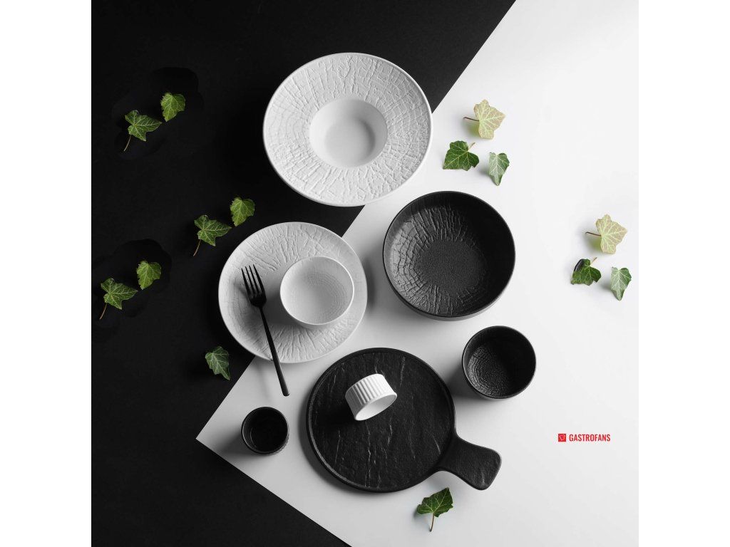 Matný povrch a výrazné reliéfy dodávajú riadu osobitý charakter a prinášajú pocit výnimočnosti na každý stôl. Servírovací tanier s rukoväťou je ideálny na modernú prezentáciu pokrmov, zdieľané servírovanie aj originálny plating.