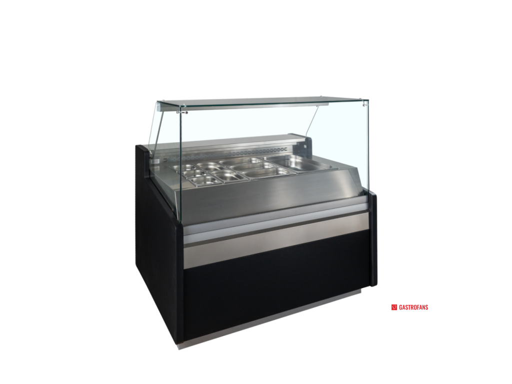Pult je ideálny pre predajne lahôdok, sendvičové bary a supermarkety. Konštrukcia s plochým sklom zaručuje vysokú hygienu a predné sklo je možné pre jednoduché čistenie vyklopiť dopredu.