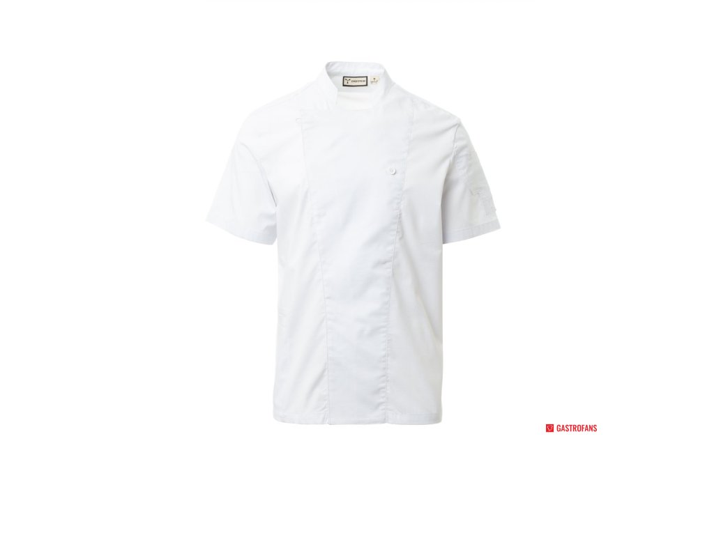 Pánskya kuchársky rondon so stojatým golierom, vyrobená z bavlny ripstop a Lycra® T400®, s vynikajúcimi elastickými a priedušnými vlastnosťami, s pohodlnou sieťovinou na chrbte, v podpazuší a v rukávoch pre zvýšenú priedušnosť. Dvojradové zapínanie na patentky, klopou, ktorú možno preložiť a zapnúť na hrudi pomocou viditeľného gombíka, čím sa vytvorí efekt na mieru šitého klopu a inovatívny výstrih do V. Dlhé rukávy s manžetami košele zapínané na viditeľné patentky. Ikona v tvare nášivky na ľavom ramene s výšivkou vrtule v rovnakom odtieni, doplnená vreckom na pero. Praktické vrecko na smartfón v páse.Dodatočné parametre