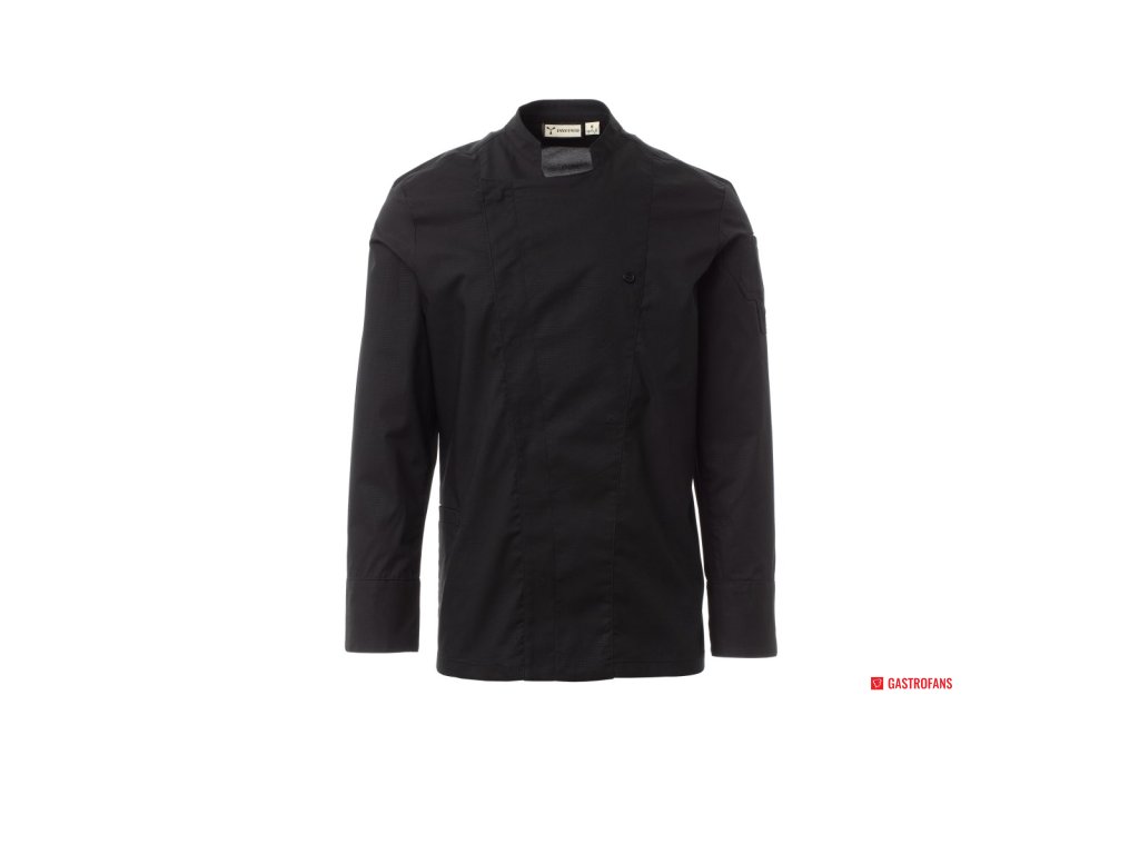 Pánskya kuchársky rondon so stojatým golierom, vyrobená z bavlny ripstop a Lycra® T400®, s vynikajúcimi elastickými a priedušnými vlastnosťami, s pohodlnou sieťovinou na chrbte, v podpazuší a v rukávoch pre zvýšenú priedušnosť. Dvojradové zapínanie na patentky, klopou, ktorú možno preložiť a zapnúť na hrudi pomocou viditeľného gombíka, čím sa vytvorí efekt na mieru šitého klopu a inovatívny výstrih do V. Dlhé rukávy s manžetami košele zapínané na viditeľné patentky. Ikona v tvare nášivky na ľavom ramene s výšivkou vrtule v rovnakom odtieni, doplnená vreckom na pero. Praktické vrecko na smartfón v páse.Dodatočné parametre