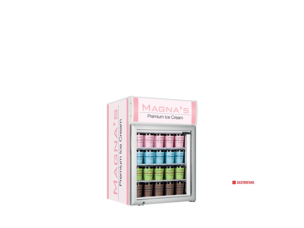 UF 100 GCP je kompaktná stolná mraziaca skriňa s presklenými dverami a osvetleným reklamným panelom, ideálna pre pod. Vďaka výkonnému LED osvetleniu a vyhrievanému sklu je obsah vždy dobre viditeľný, bez zahmlievania.