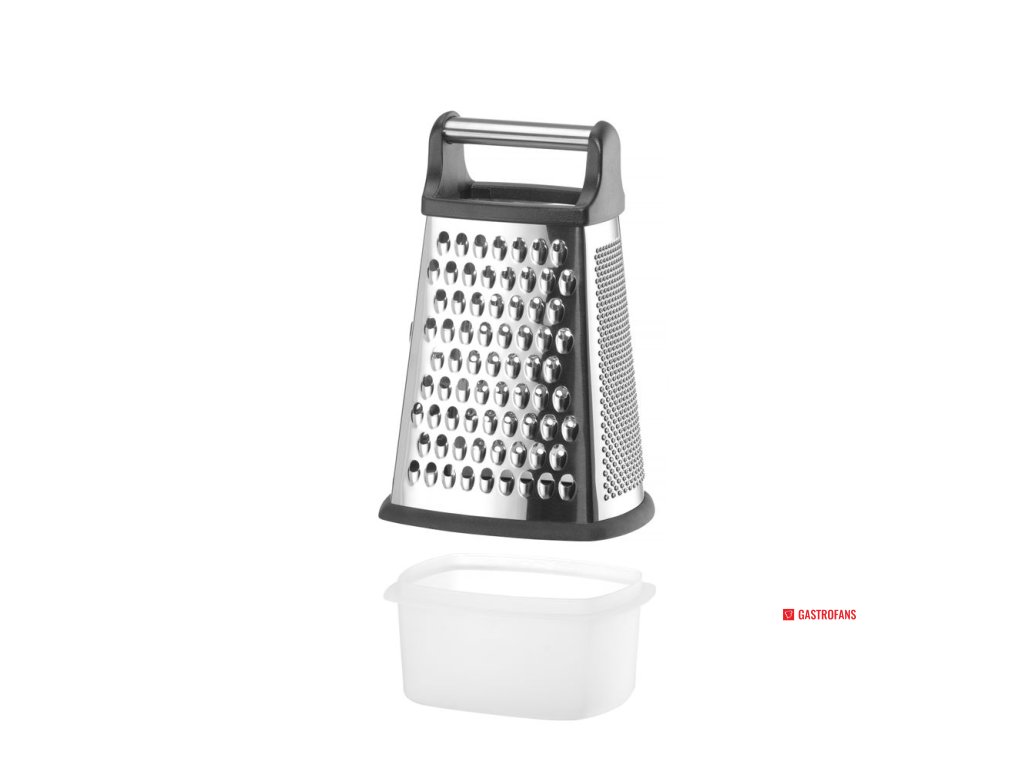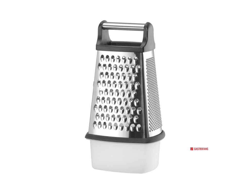 Struhadlo je vyrobené z nerezovej ocele, s rukoväťou z ABS a protišmykovou základňou. Zberná nádoba vyrobená z PP. 4 rôzne strany strúhania: jemné, stredné, hrubé a nakrájané na plátky. Možno umývať v umývačke riadu.