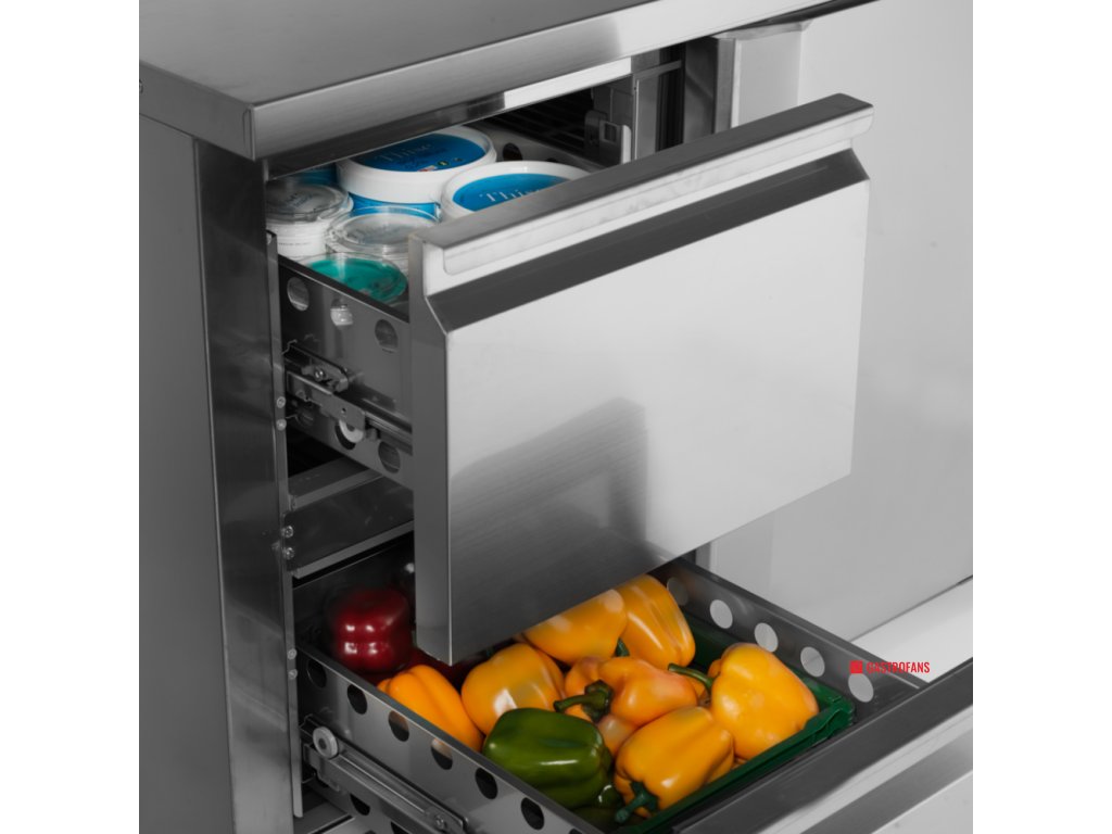 Chladiaci stôl je navrhnutý pre náročnú prevádzku v profesionálnych kuchyniach, reštauráciách a ďalších gastro zariadeniach. Jeho zásuvky veľkosti GN1/1 umožňujú efektívnu organizáciu surovín, ktoré máte neustále po ruke. Vďaka ventilovanému chladeniu sa zaisťuje rovnomerné rozloženie teploty, čo prispieva k dlhšej čerstvosti potravín.
